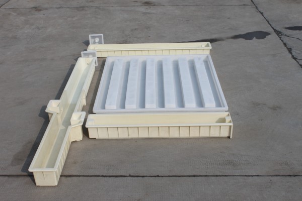 而其中采用PP聚丙烯材質(zhì)的,則是水泥圍欄塑料模具中的欄片模具,7幅設(shè)計,尺寸為149.5*140.5*9cm,PP聚丙烯具備非常高的韌性,針對大面積施工的水泥制品模具有著相當(dāng)好處,特別牢固且不易碎。缺點(diǎn)則是儲存不當(dāng)容易造成水泥模具變形,而造成模具報廢,所以在儲存過程中一定要整齊疊放于平地。