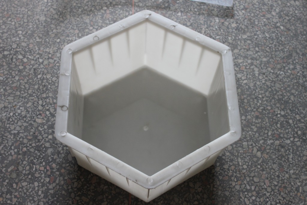 采用聚丙烯塑料原料經(jīng)注塑加工生產(chǎn)制造完成的實(shí)心六角護(hù)坡磚模具,外表白色透析,內(nèi)在堅(jiān)韌耐用,是生產(chǎn)高質(zhì)量實(shí)心六角護(hù)坡磚難得的塑料模具制品。實(shí)心六角護(hù)坡磚模具整體結(jié)構(gòu)簡(jiǎn)單,呈一個(gè)塑料盒子樣子,上面開口用于水泥澆筑,所以有不少地方也稱為實(shí)心六角護(hù)坡磚模盒。