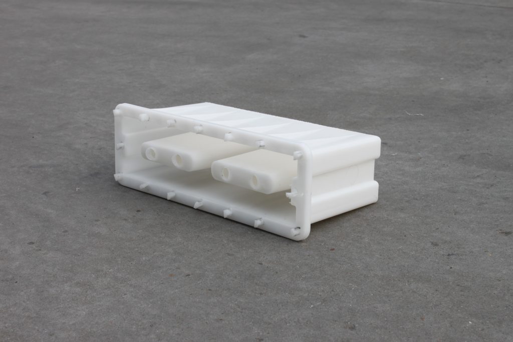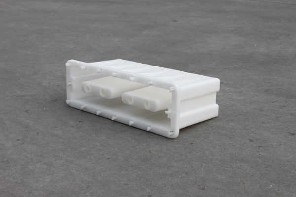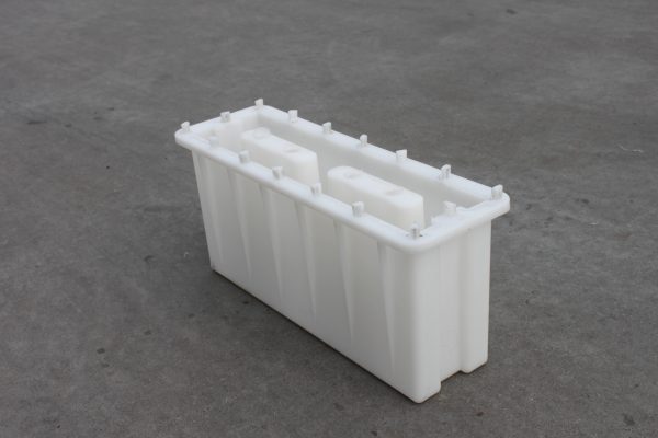 而這個(gè)塑料空心磚模具主要采用兩孔設(shè)計(jì),因?yàn)樗嗷炷撩芏容^重,在加上塑料材質(zhì)的模具基本都具備一定韌性,填充量過多易導(dǎo)致模具膨脹使得水泥空心磚成品變形,所在模具四周均采用加強(qiáng)筋設(shè)計(jì),對(duì)于防止這種情況的發(fā)生作用還是相當(dāng)穩(wěn)定的。