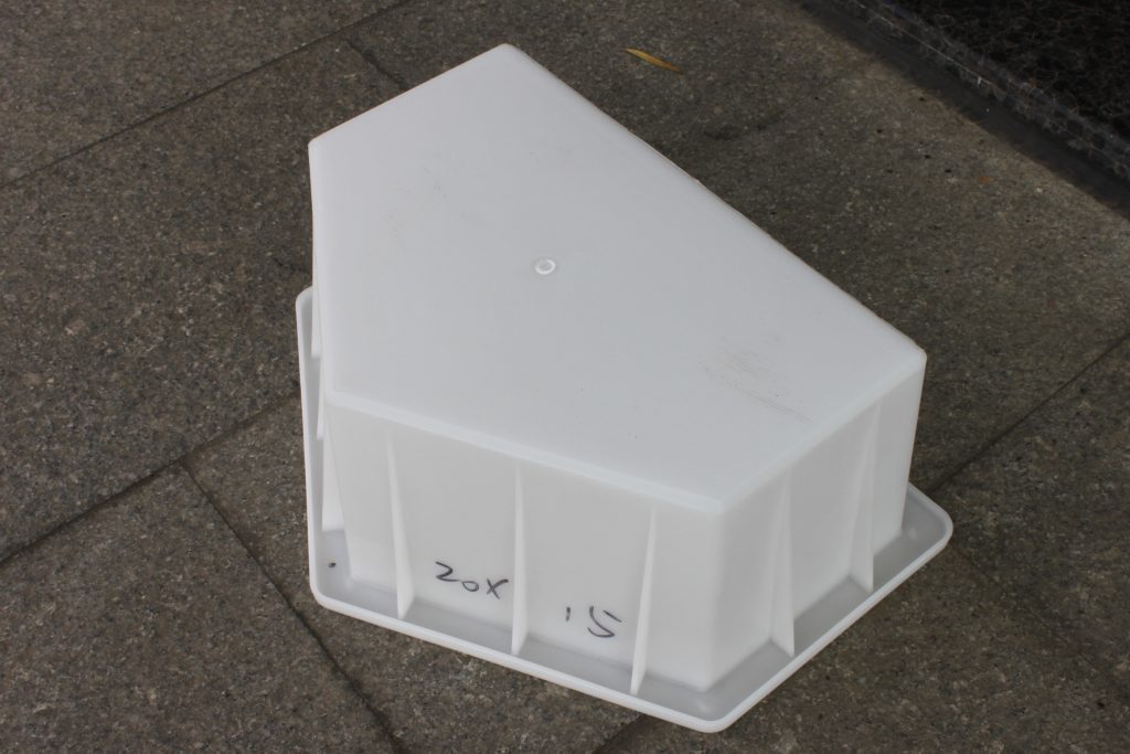 這是在眾多水泥制品模具中應(yīng)用范圍相對較小的五角護坡磚塑料模具,主要采用了PP聚丙烯樹脂材質(zhì),經(jīng)過注塑機熱熔成型,為增強實際水泥澆筑施工使用,在護坡磚塑料模具外圍均采用了加強筋設(shè)計,防止水泥混凝土注入過量導致模具變形,對于保障長期重復使用極為關(guān)鍵。