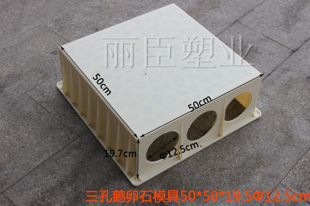 其中泄水管線纜槽模具整體外觀為正方形結(jié)構(gòu),長(zhǎng)款分別是50厘米,高度為19.5厘米,六個(gè)貫通圓孔單一直徑為12.5厘米,具體細(xì)節(jié)指標(biāo)及樣式請(qǐng)參考下圖。