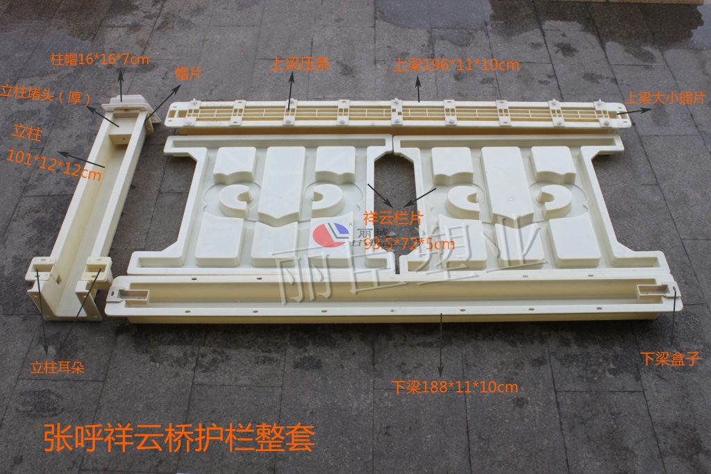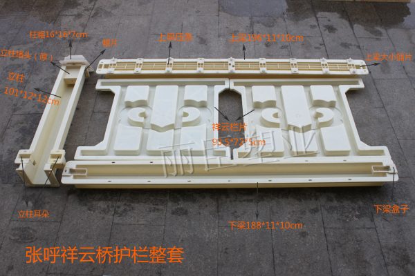 此混凝土護欄模具主要用以張呼鐵路(張家口南站-呼和浩特東站)所需水泥混凝土護欄預制建設,其中所有原料都采用高精度標準的ABS塑料經(jīng)高溫注塑加工成型,水泥欄片主要以祥云雕刻設計。