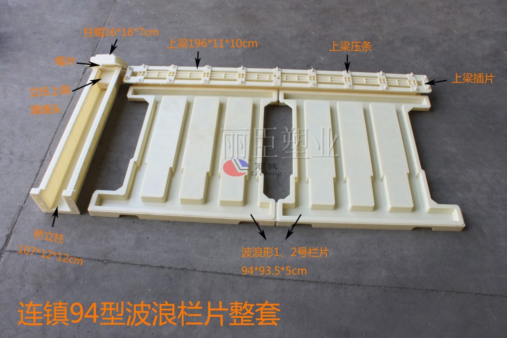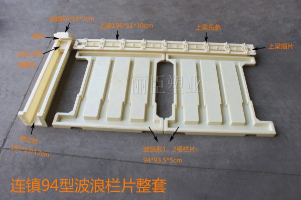 連鎮(zhèn)鐵路柵欄模具欄片在澆筑過(guò)程中采用ABS塑料為主要注塑原料,ABS塑料原料質(zhì)地較硬,在對(duì)水泥制品模具澆筑時(shí)不易發(fā)生變形等情況,也能減少因運(yùn)輸問(wèn)題而照成的模具破順變形等情況,澆筑成型后的水泥制品柵欄在外觀上呈現(xiàn)波浪形,更能符合符合江南水鄉(xiāng)風(fēng)格。