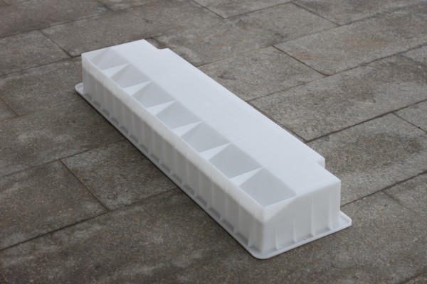 路側(cè)石模具使用純PP聚丙烯材料,以注塑工藝一次成型,主要特色為路側(cè)石外形為缺角及有一定坡度。成品整體工藝表面光滑,內(nèi)部結(jié)構(gòu)合理,水泥構(gòu)件脫模方面,在使用次數(shù)上更為耐用。主要使用在高鐵高速及市政公路道路側(cè)石的預制。