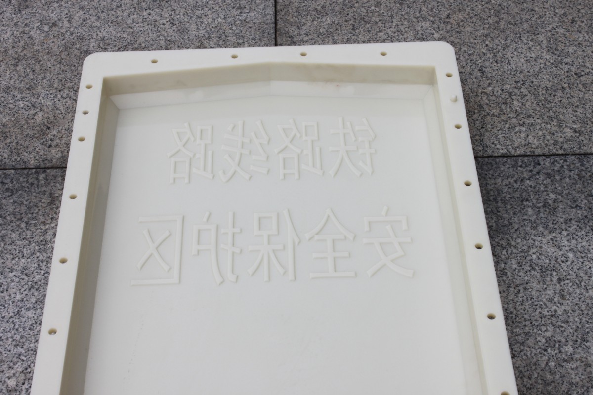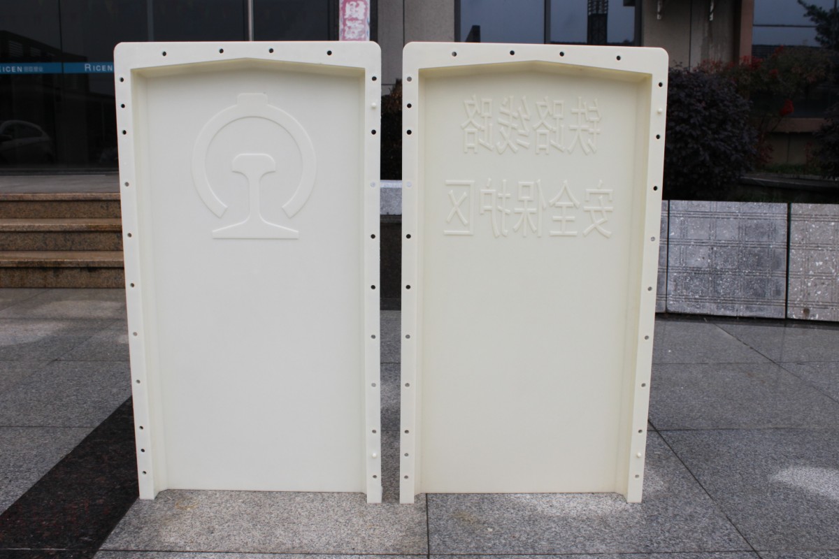 水泥警示牌模具使用ABS材質注塑工藝制造,主要分為2個部分。正面為標有“鐵路線路安全保護區(qū)”字樣,反面為一個中國鐵路圖案,配件方面主要為2個主體部分組裝時所需要的螺絲螺帽。主要應用為水泥混凝土警示牌預制,主要功能是在中國鐵路建設中,提醒人們?yōu)榇颂帪殍F路線路安全保護區(qū),在施工等一系列活動中需注意國家鐵路的安全。