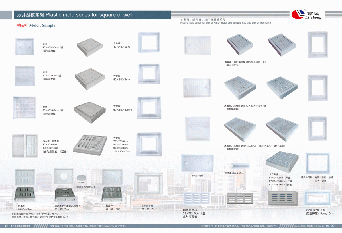 20-21:方井檢查井蓋系列 ? ? ? ? ? ? ? ? ? ? ? ? ? ? ? ? ? ? ? ? ? ? ? ? ? ? ? ? ? ? ? ? ? ? ? ? ? ? ? ? ?22:水表箱、路燈箱、燃氣箱塑料模具系列