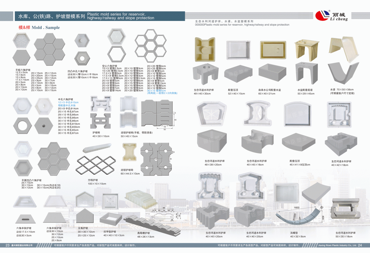 23:水利護坡模具、公路鐵路護坡塑料模具系列 ? ? ? ? ? ? ? ? ? ? ? ? ? ? ? ? ? ? ? ? ?24:生態(tài)水利河道護岸、水渠、水盆塑模系列