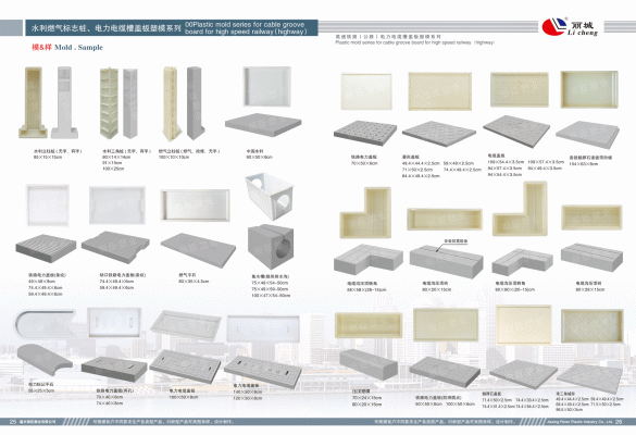 25:水利燃氣標志樁、電力電纜槽蓋板塑料模具系列 ? ? ? ? ? ? ? ? ? ? ? ? ? ? ? ? ?26:電力蓋板與電纜溝壓頂系列
