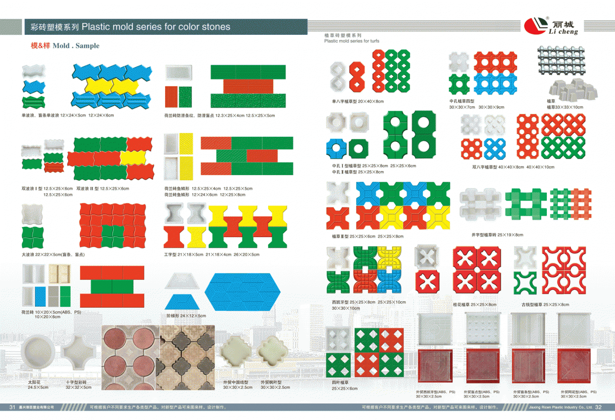 27-28:高鐵、高速、變電站、電力電纜槽蓋板系列 ? ? ? ? ? ? ? ? ? ? ? ? ? ? ? ? ? ?29-31:彩磚塑料模具系列