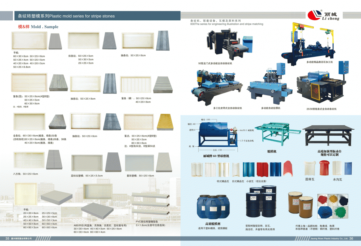 35:條紋磚模具系列 ? ? ? ? ? ? ? ? ? ? ? ? ? ? ? ? ? ? ? ? ? ? ? ? ? ? ? ? ? ??36:條紋機、路沿石精加工機械設備及配套設備、瓦模、原料系列