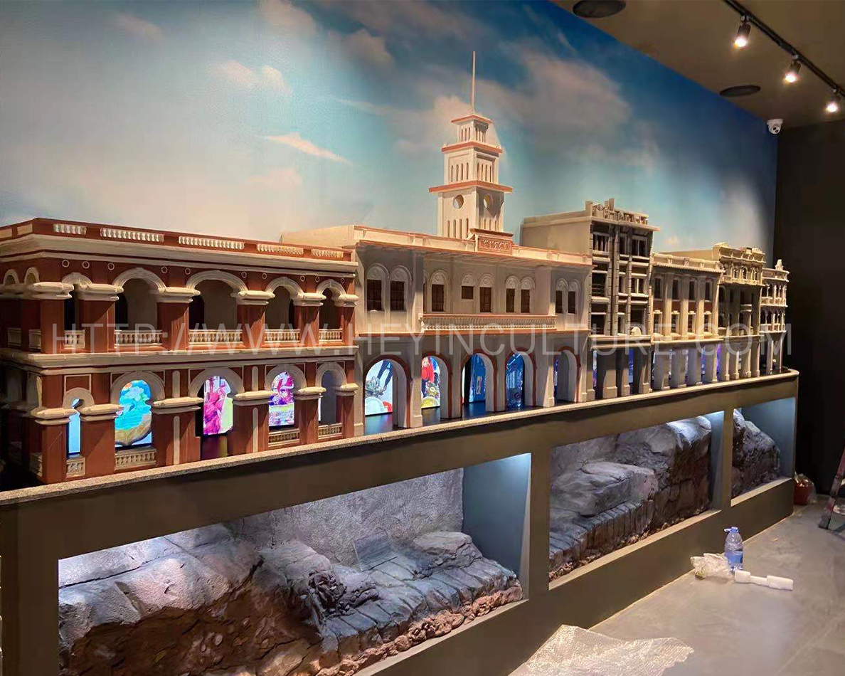 ▲ 多建筑組合模型(省港大罷工紀(jì)念、消防總局舊址、李占記、五仙門發(fā)電廠舊址、周恩來主持的中共兩廣區(qū)委軍舊址、文德路)