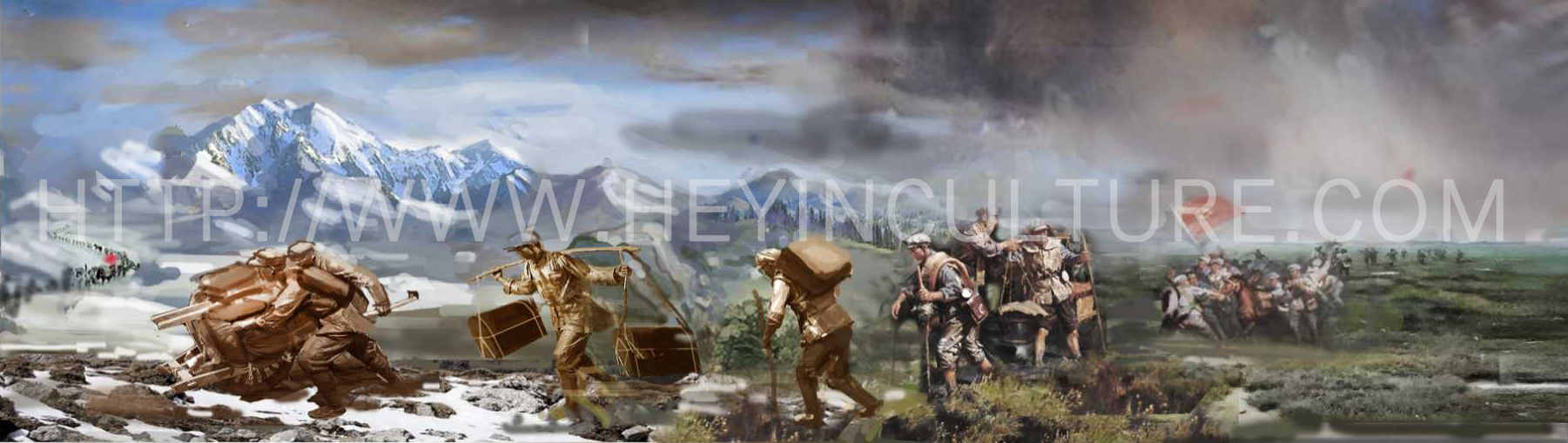 設(shè)計說明:講述長征路上,毛澤民率領(lǐng)中央縱隊第15大隊14位來自銀行的同志以及100多名運輸員,用扁擔挑起中央紅軍的全部家當——金子、銀元和部分紙幣“紅軍票”隨軍長征的故事。