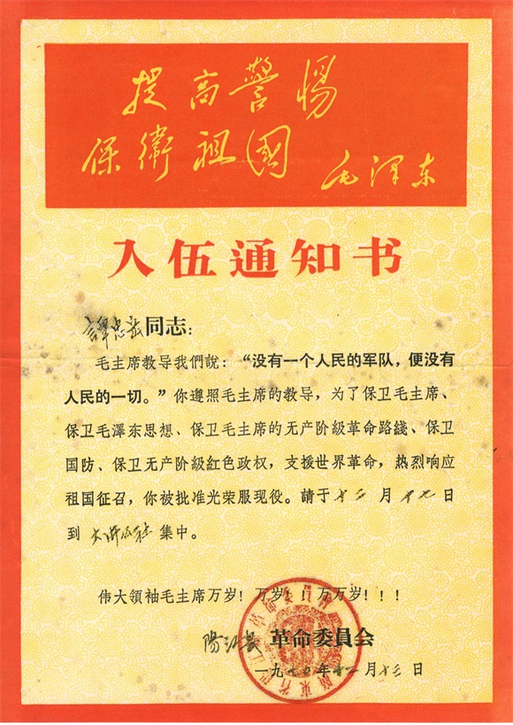 ▲ 入伍通知書(仿制品)