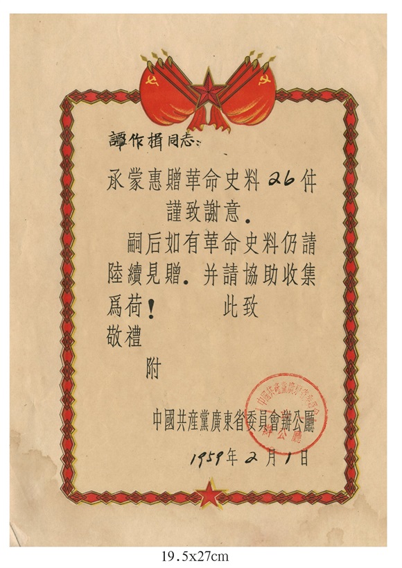 ▲ 革命犧牲工作人員家屬光榮紀念證書正反面(仿制品)