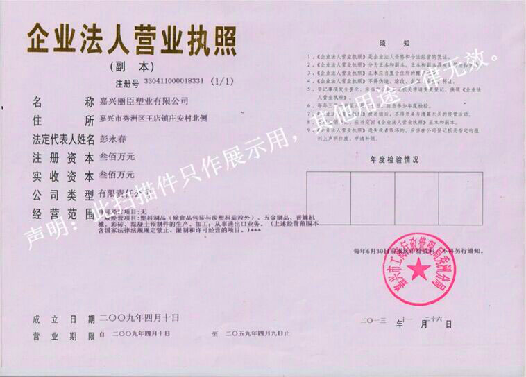 嘉興麗臣塑業(yè)有限公司榮譽墻